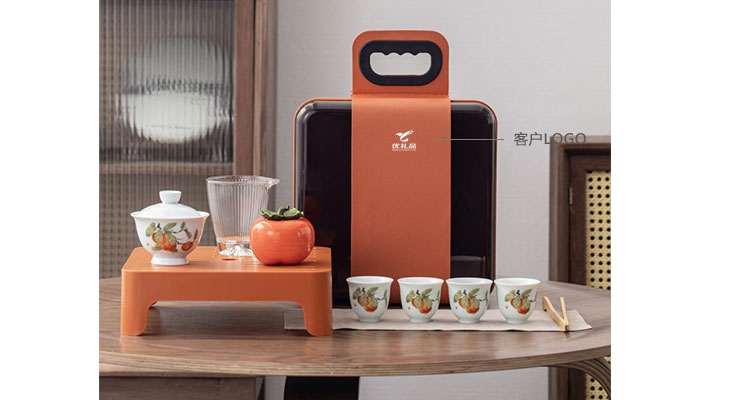 柿事如意春节送礼套组礼盒茶具陶瓷柿子茶叶罐旅行茶具套装起订量: