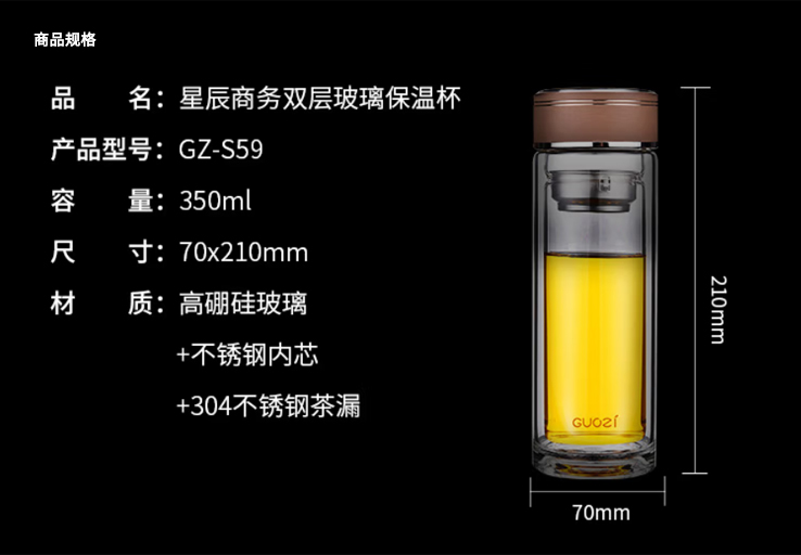 果兹 GZ-S59 星辰商务双层玻璃杯350ml小型办公杯便携茶水分离杯定制起订量: