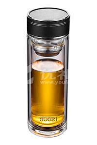果兹 GZ-S59 星辰商务双层玻璃杯350ml小型办公杯便携茶水分离杯定制