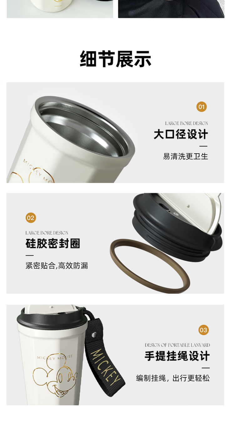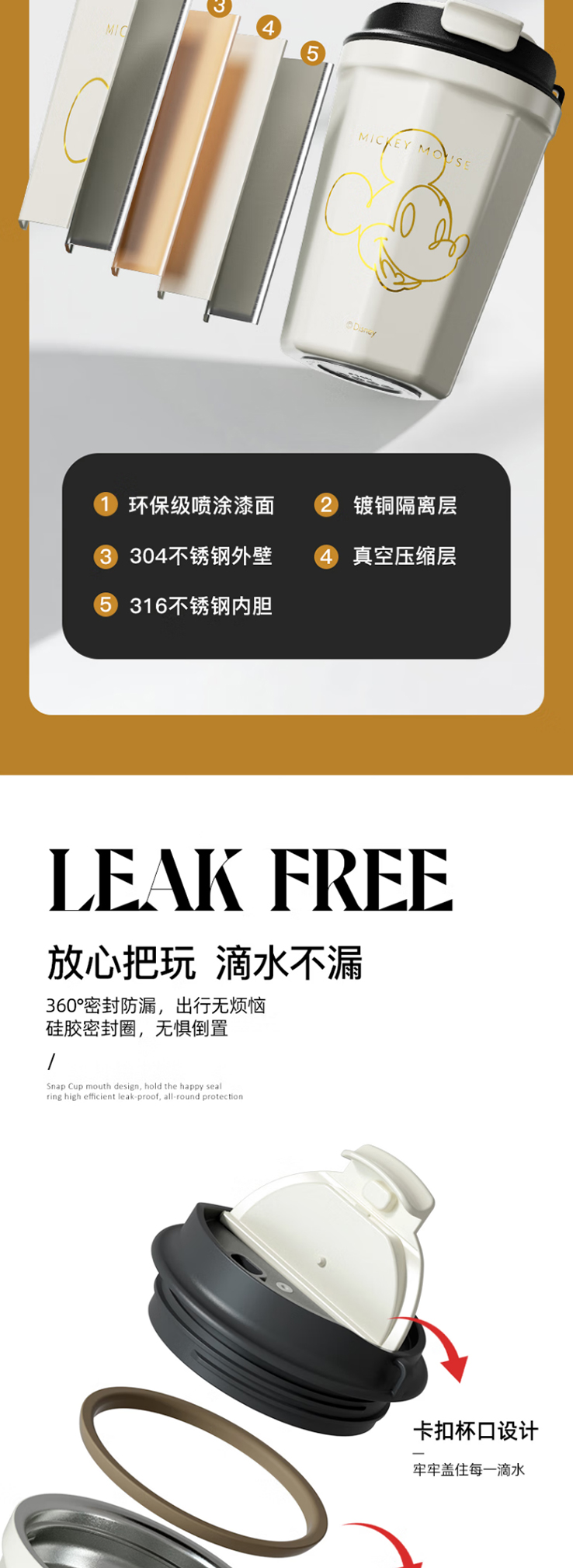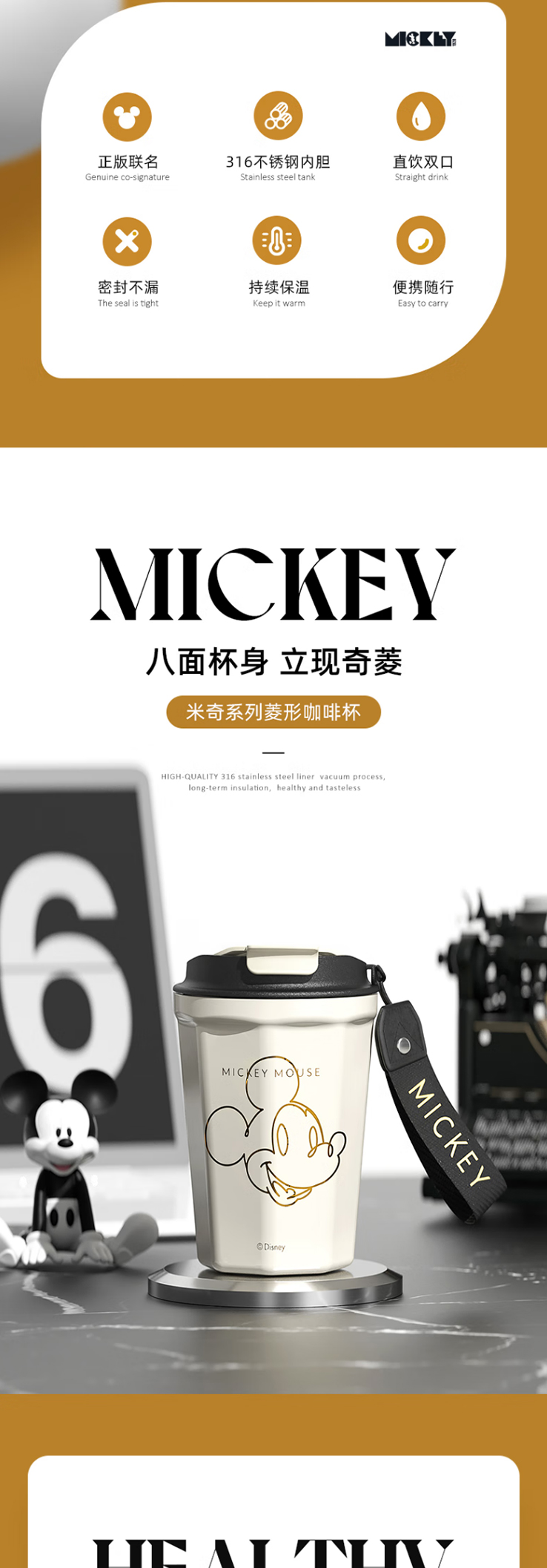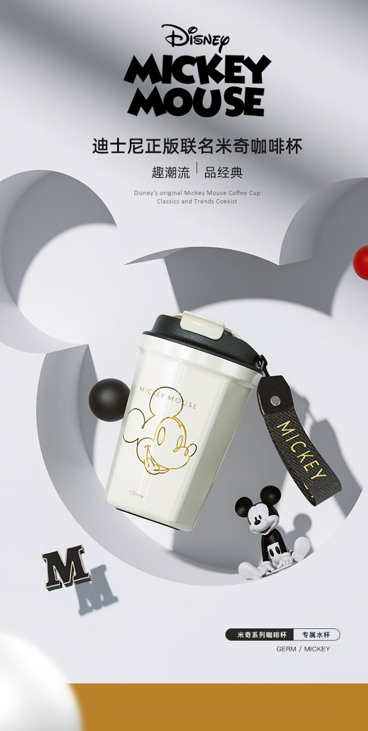 GERM迪士尼米奇咖啡杯随行保温杯菱形车载保冷水杯定制起订量: