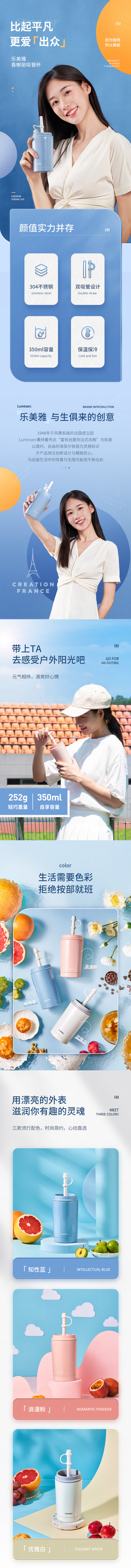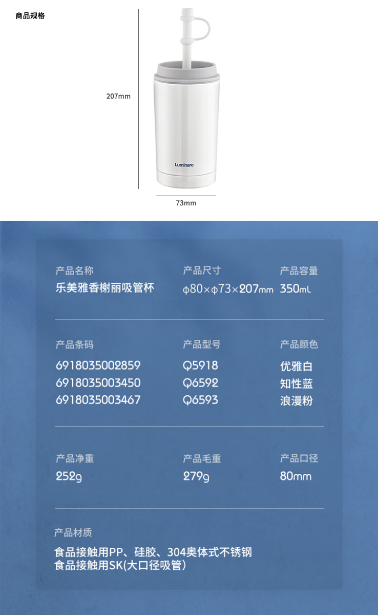乐美雅(Luminarc)Q5918真空吸管杯不锈钢保温杯轻便随手杯定制起订量: