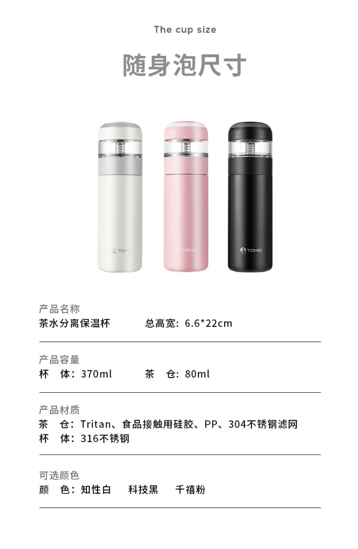 特美刻(TOMIC)保温杯分离陶瓷内胆泡茶杯不锈钢大容量高颜值便携保冷保温杯定制起订量: