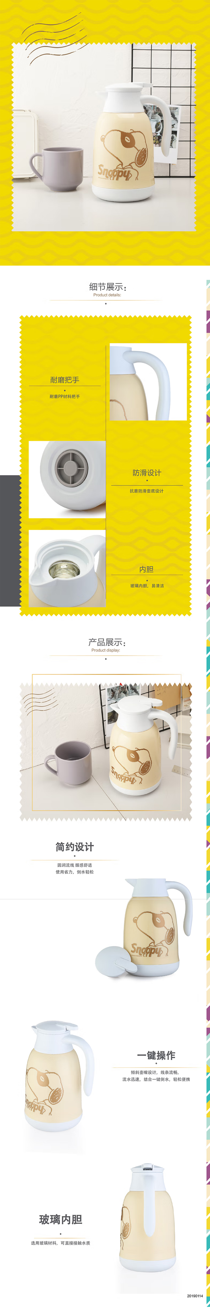 SNOOPY 清漾保温暖水壶 SP-B127G 玻璃内胆大容量保温壶定制起订量: