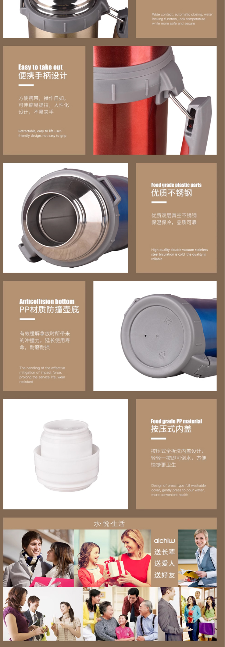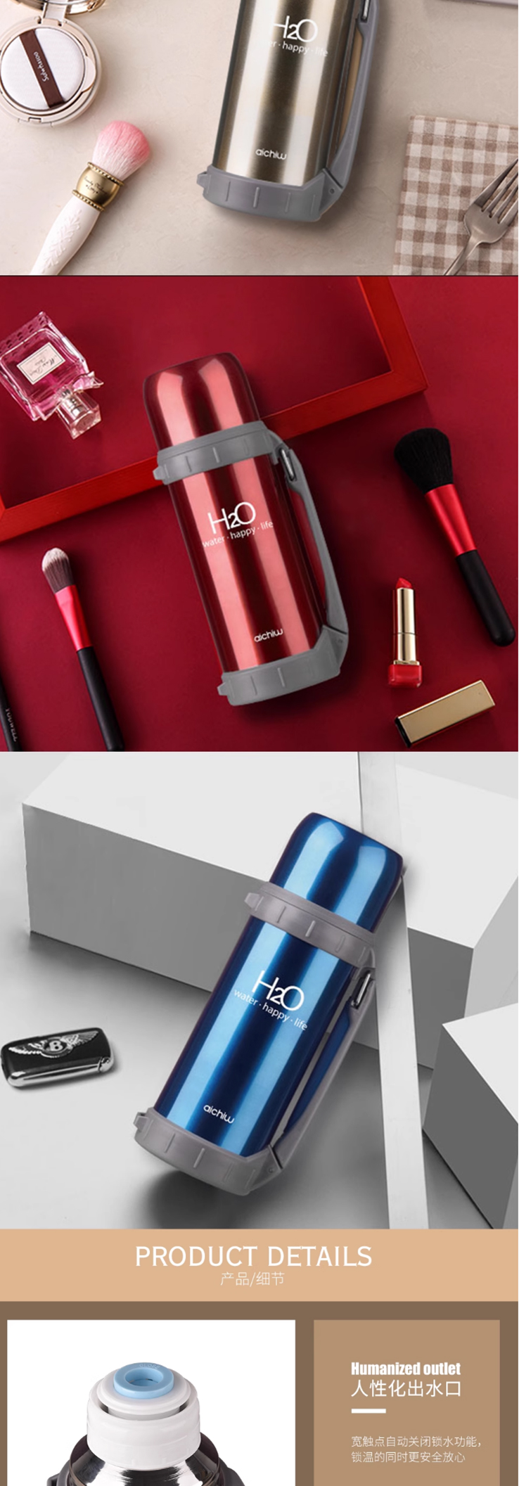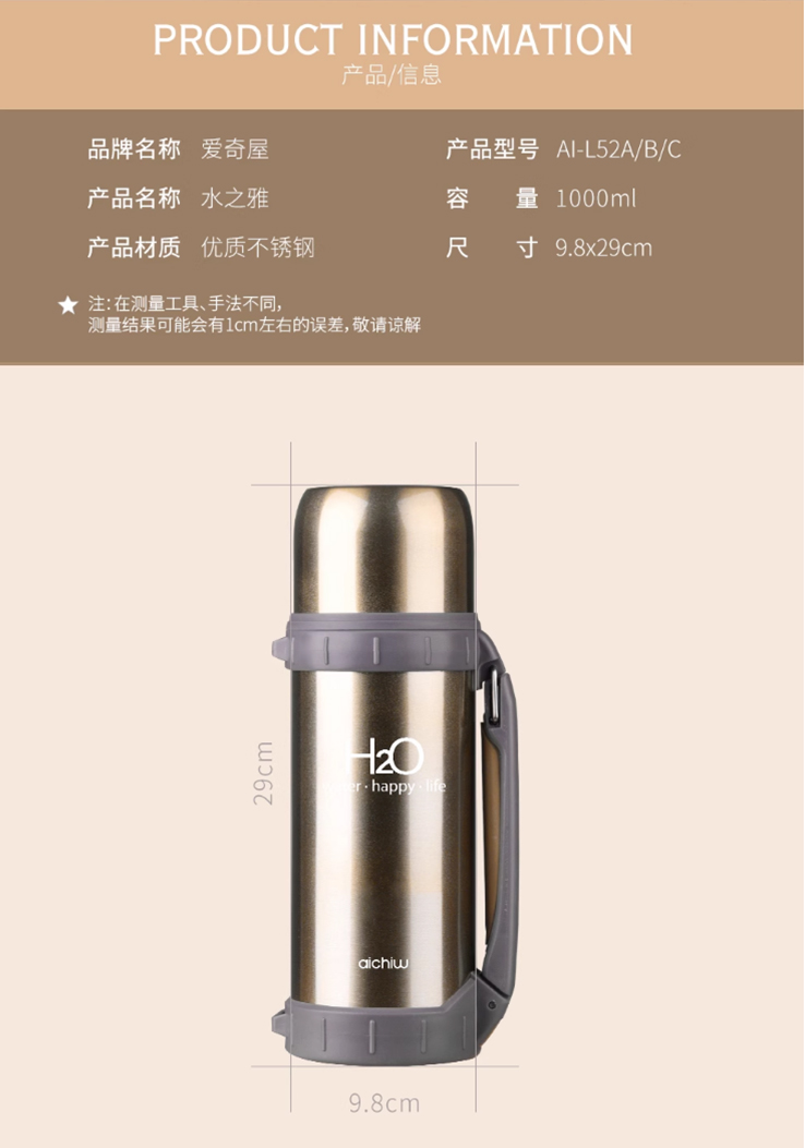 爱奇屋 水之雅保温壶 1.8L居家户外旅行大容量便携不锈钢运动壶定制起订量: