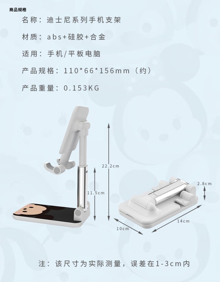 YunGuo 迪士尼联名可折叠桌面手机支架便捷可伸缩折叠固定懒人支架定制起订量: