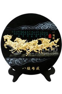 礼品表面烫上色箔等材料的文字和图案(有色彩),有无色烫印,单色烫印,混合式烫印和套印等。 优势:图案清晰,表面光洁平整,线条挺直,美观,色彩鲜艳夺目,有现代感;耐磨,耐候,其颜色和花纹之多,还可根据具体要求定做专版。 劣势:热压印的缺点是需要高温、高压,且即使在高温、高压下很长时间,对于有的图案,仍然只能导致聚合物的不完全位移,即不能完全填充印章的腔体。 应用范围:烫印一般用在纸张、织品、皮质类等礼品包装上。图书封面烫金,礼品盒烫金,烟、酒、服装的商标和盒的烫金,贺卡、请柬、笔的烫金等等