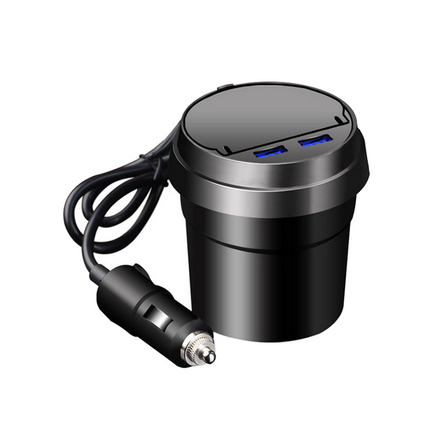 杯架式车载充电器 多功能烟灰缸点烟器车充 汽车双USB手机充电器 定制