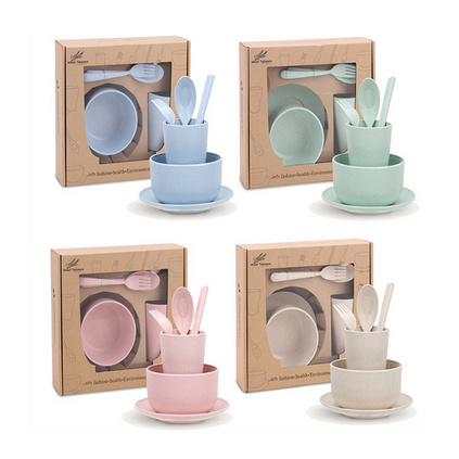 小麦秸秆儿童餐具 小麦餐具5件套 户外便携餐具五件套装定制