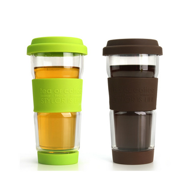 Stylor/法国花色office6杯水2.0纳米硅胶茶滤带盖玻璃杯茶杯定制
