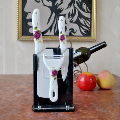 玫瑰花造型陶瓷刀3件套批量定制