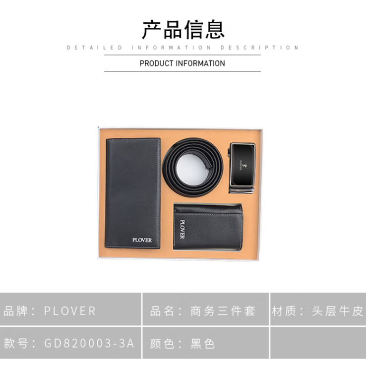 PLOVER长款钱夹钥匙包皮带三件套定制起订量: