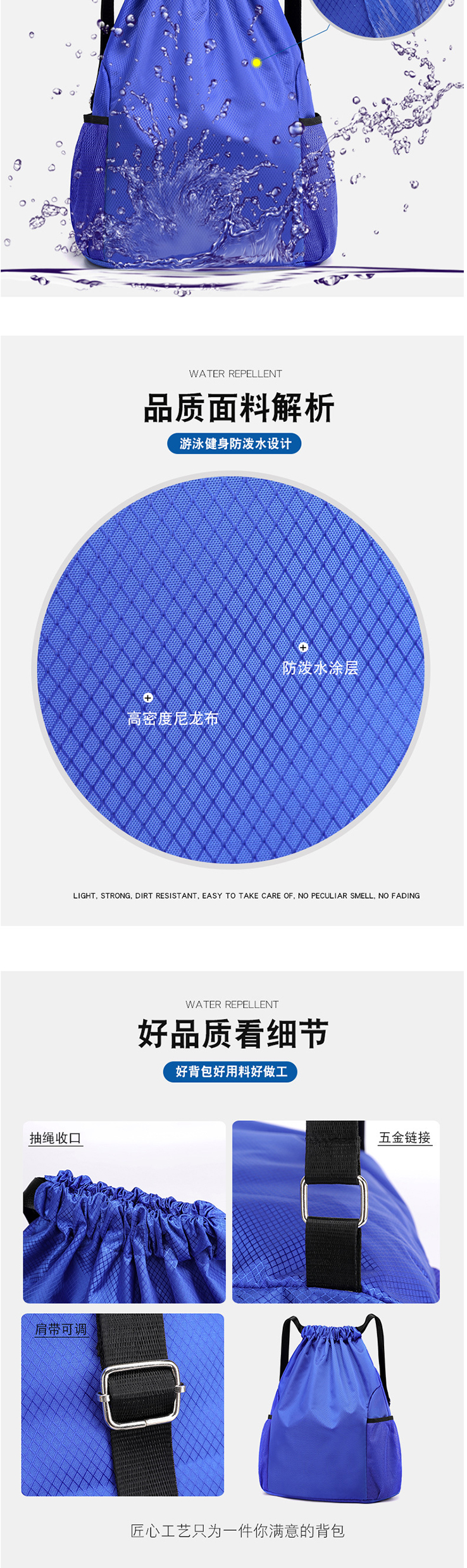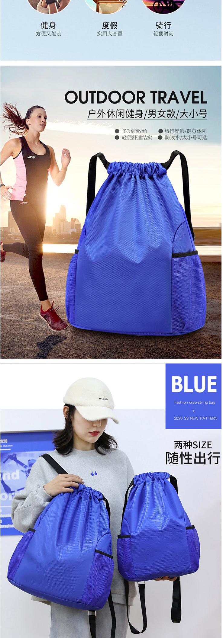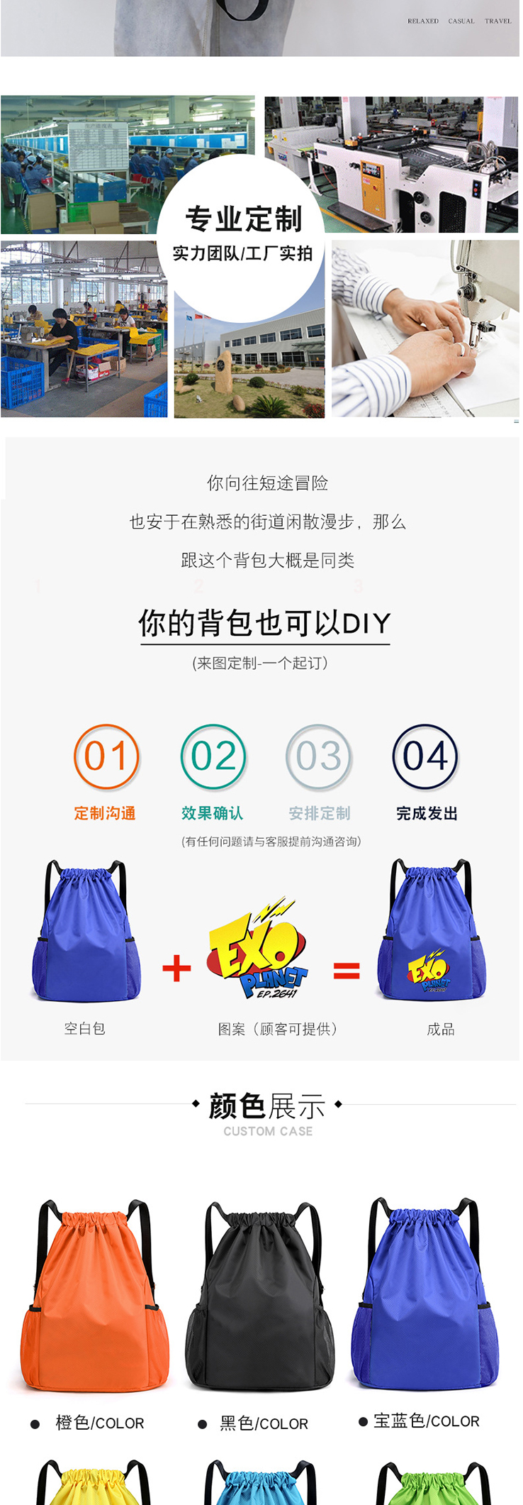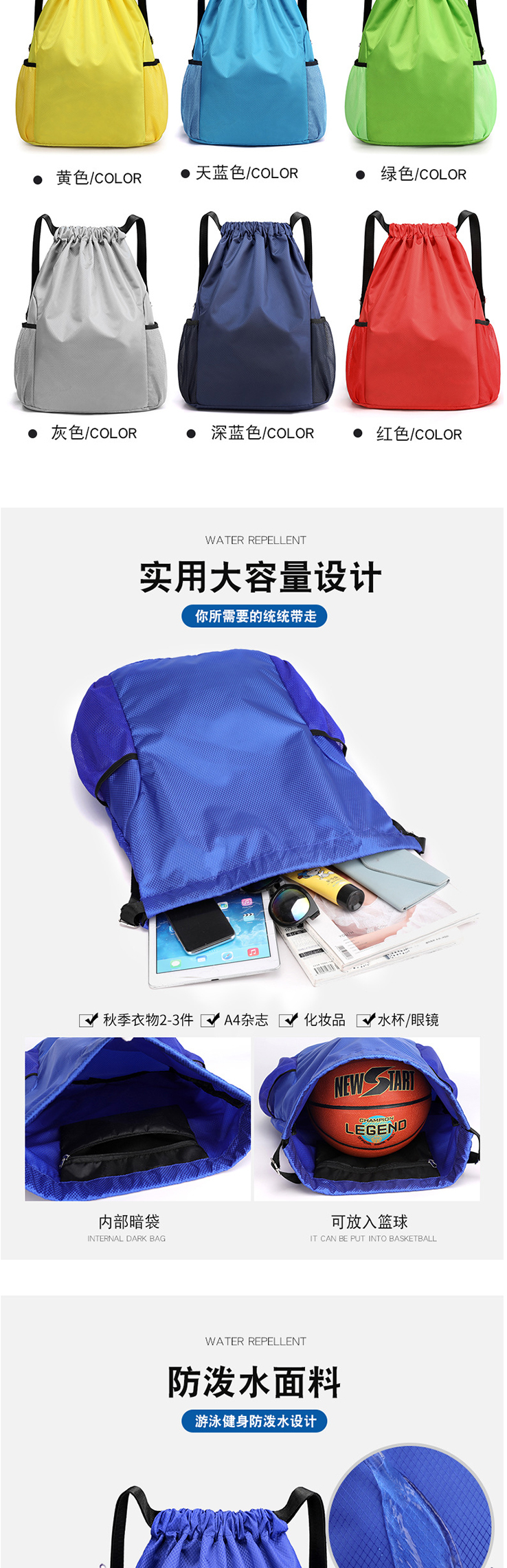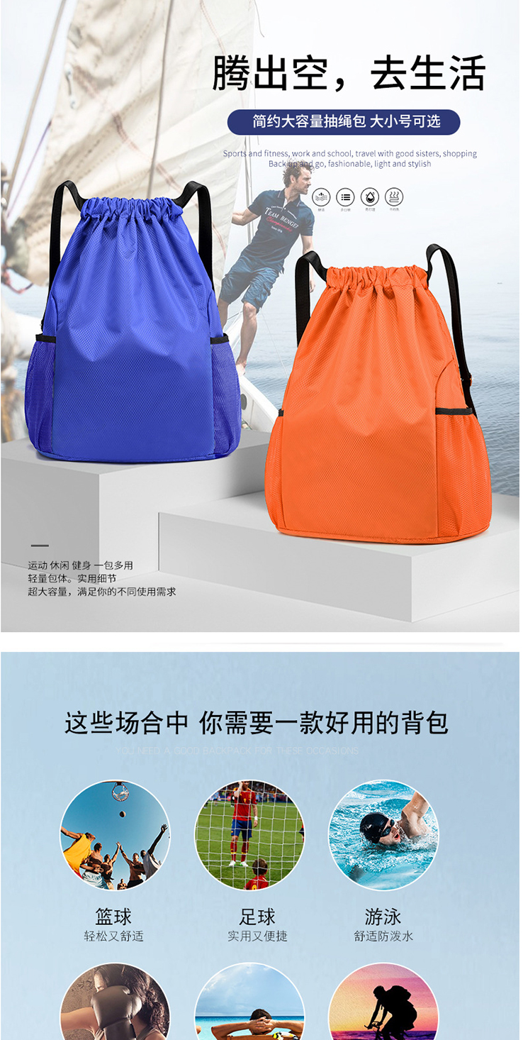束口袋双肩包 新款简易旅行背包大容量抽绳健身运动包定制起订量: