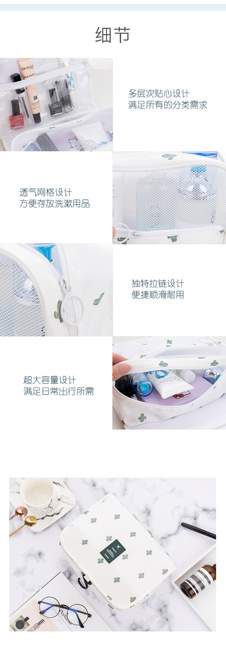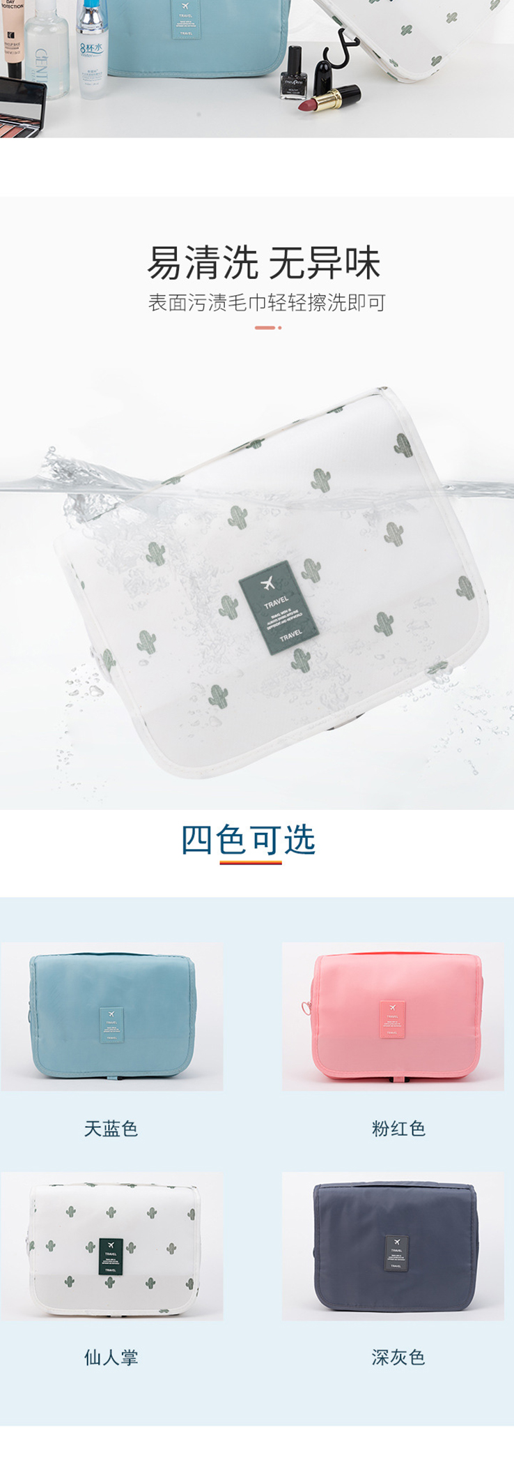 旅行挂钩洗漱包 洗漱化妆包 便携大容量干湿分离洗漱包定制