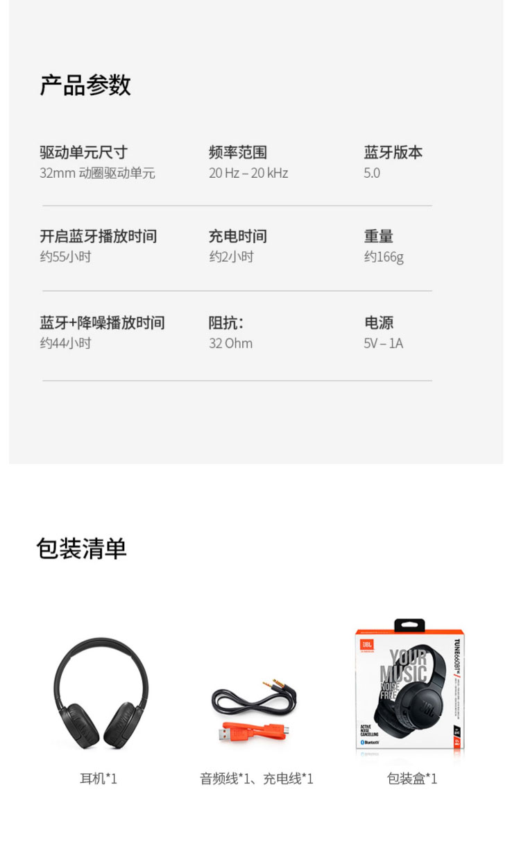 JBL头戴式无线降噪耳机T660NC无线蓝牙运动耳机音乐耳机通用苹果华为小米手机头戴式耳机定制起订量:
