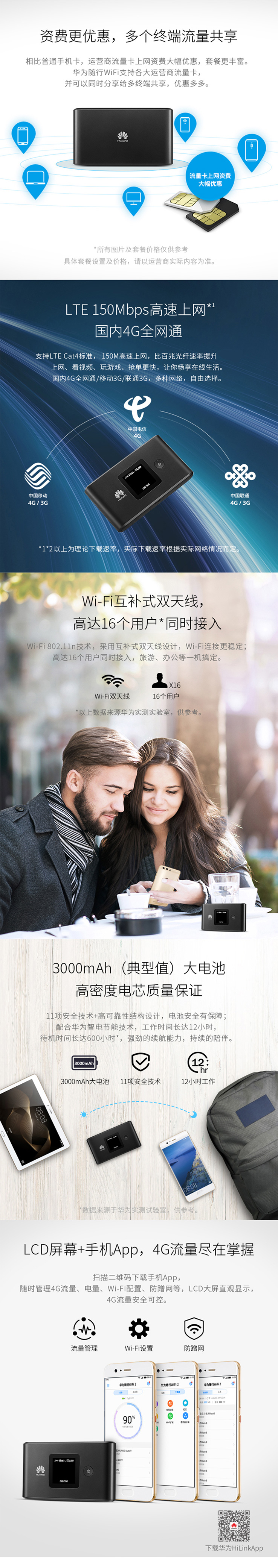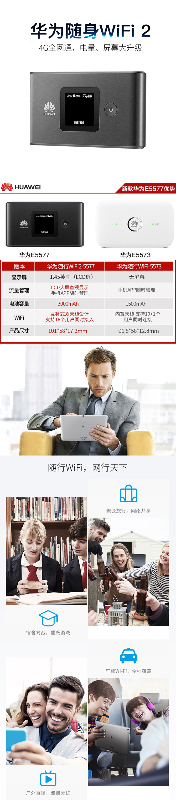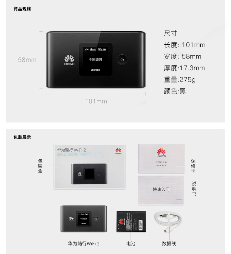 华为随身WiFi E5577全网通4G无线路由器 移动车载流量热点上网卡定制