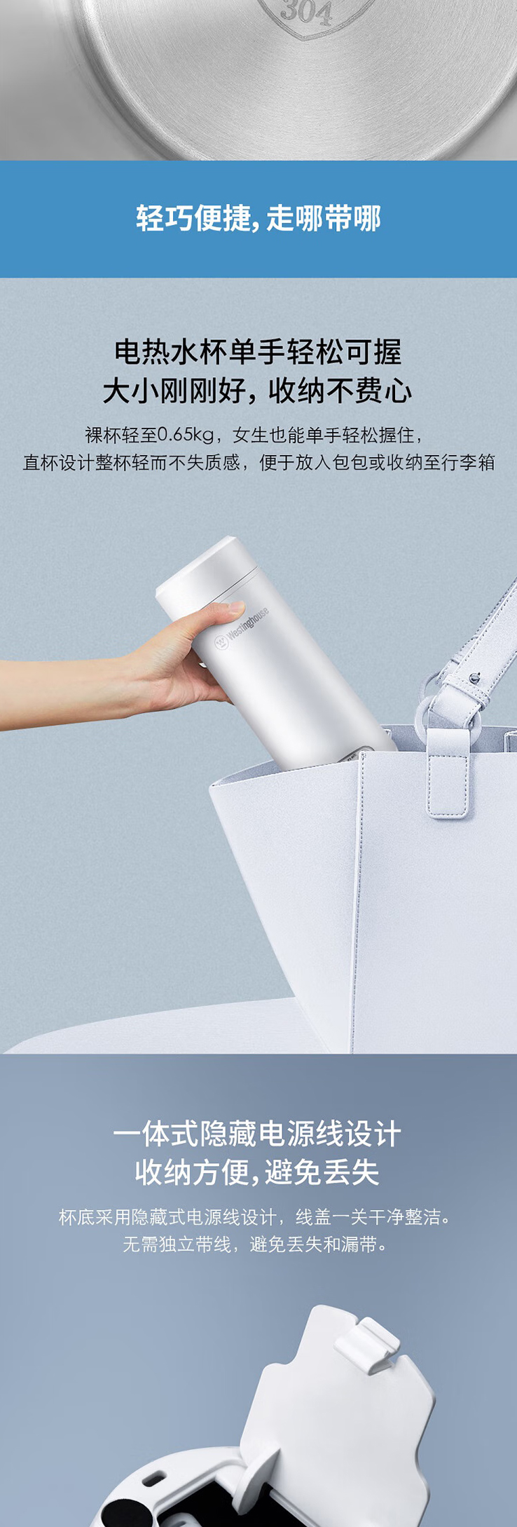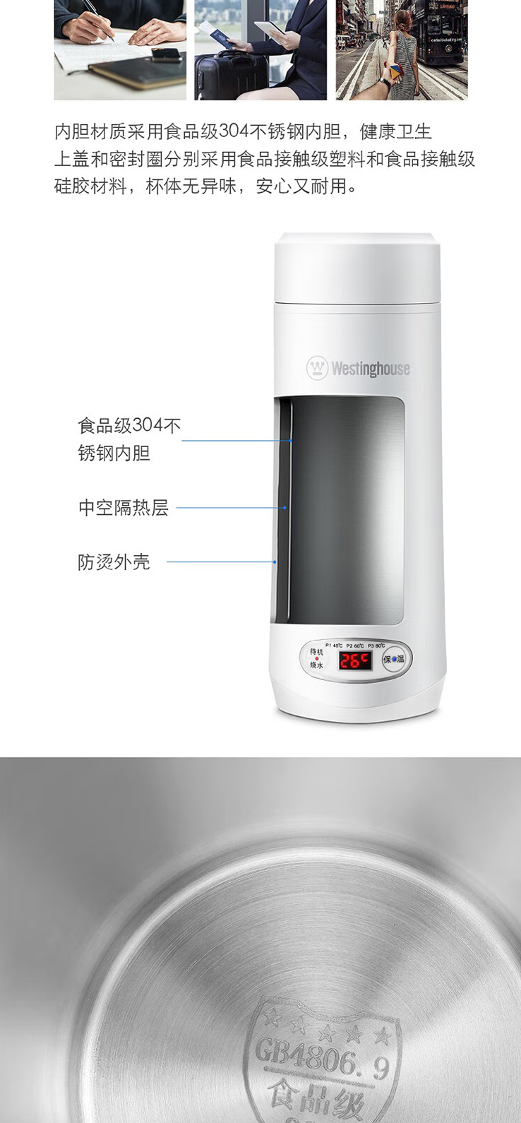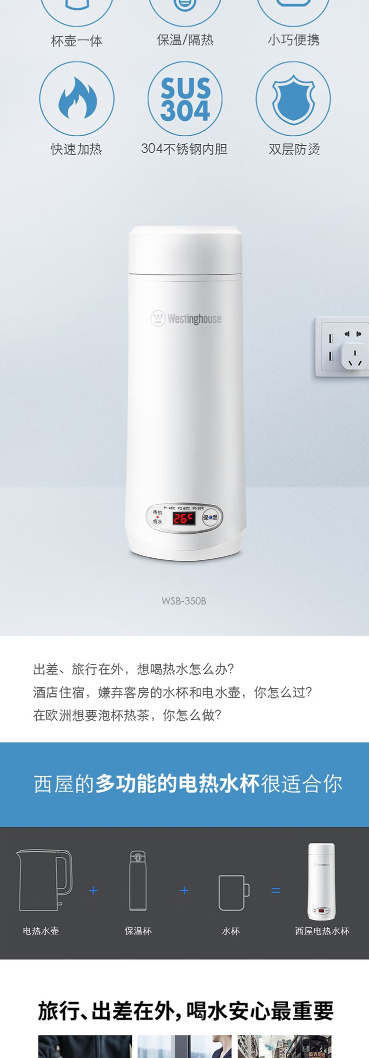 西屋(Westinghouse)便捷式电热水杯WSB-350B家用自动断电开水壶泡茶专用烧水器定制